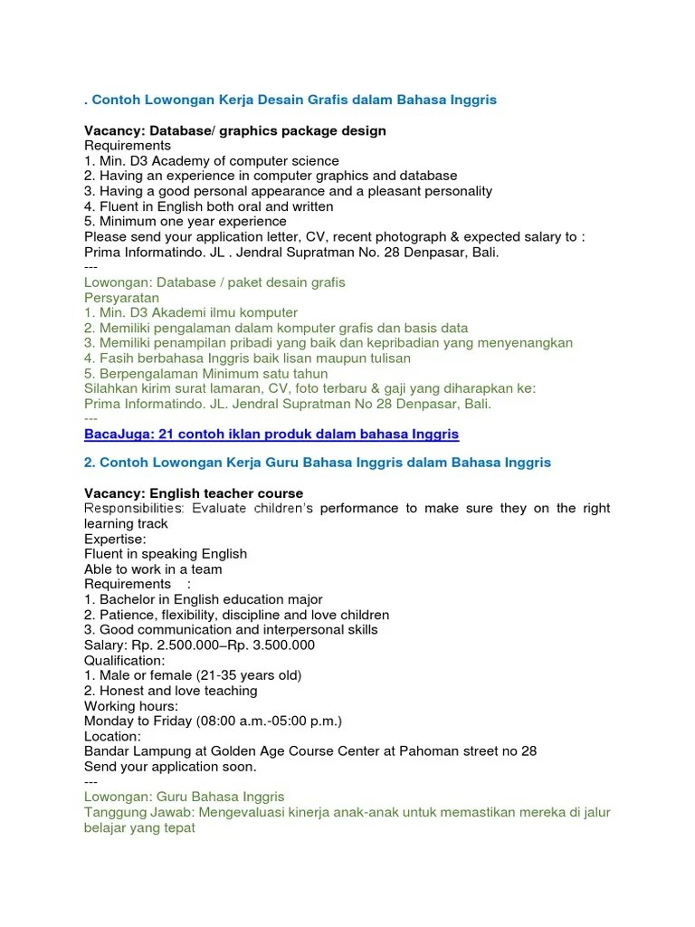 Contoh Lowongan Kerja Desain Grafis Dalam Bahasa Inggris : 24 Contoh Surat Lamaran Kerja Desain Grafis Dalam Bahasa Inggris Kumpulan Contoh Gambar - Mampu melakukan teknik pengajaran bahasa inggris secara interaktif meliputi membaca, berbicara dan menulis.. Mampu melakukan teknik pengajaran bahasa inggris secara interaktif meliputi membaca, berbicara dan menulis. contoh desain spanduk cellular jual pulsa vector menurut admin desain sebuah spanduk yang bagus itu cukup penting percaya ata spanduk desain banner desain. contoh iklan lowongan kerja & Berikut beberapa contoh cv yang bisa anda jadikan referensi untuk menulis cv dalam bahasa inggris. contoh lowongan kerja desain grafis dalam bahasa inggris.